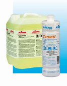 Corvett to silnie alkaliczny płyn do mycia gruntownego mikroporowatych podłóg. Dedykowany do mikroporowatych podłóg czyli takich, które wciągają głęboko w swoją strukturę brud. Są to np. płytki gresowe. Idealnie nadaje się do mycia alkalio- i wodoodpornych płytek podłogowych o gładkiej, szorstkiej lub mikroporowatej powierzchni, zapewniając skuteczne usunięcie zanieczyszczeń. Produkt jest szczególnie efektywny w przypadku płytek gresowych oraz płytek bezpieczeństwa.