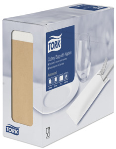Poszetki na sztućce Tork z serwetką to idealne rozwiązanie do restauracji, w których ważne jest szybkie i łatwe nakrycie stołu. Poszetka uzupełnia nakrycie stołu w prosty i stylowy sposób.