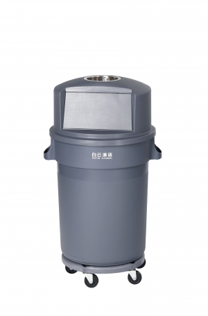 Kosz na odpadki gastronomiczne z uchylną klapkę ułatwiającą wyrzucanie odpadków z tac. Wyposażony w 4 kółka. Kolor szary. Pojemność 120l.