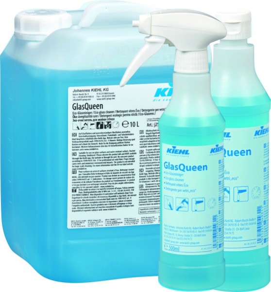 GlasQueen to gotowy do użycia płyn do mycia szyb, który można z powodzeniem stosować na powierzchniach szklanych i wodoodpornych, takich jak szkło, okna, witryny, lustra, lady sprzedażowe i szkło akrylowe. Produkt ten jest szczególnie efektywny na powierzchniach z tworzywa sztucznego i szkła akrylowego.