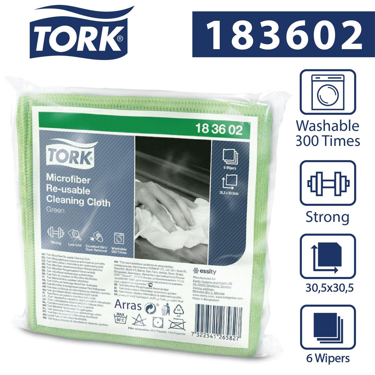 Tork ściereczka z mikrowłókien wielokrotnego użytku to wysokiej jakości czyściwo z mikrofibry. Produkt został zaprojektowany w taki sposób, aby można go było prać i ponownie używać. Czyściwo o niskiej pylności zapewnia znakomite wyniki czyszczenia twardych, gładkich powierzchni.